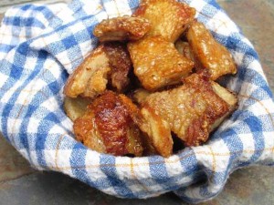 Sajttal és baconnel tűzdelt felkockázott kenyér